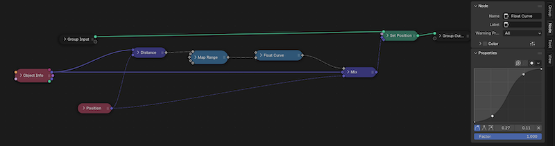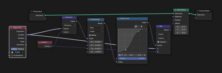 - Connect SetPosition.Output to GroupOutput.Geometry